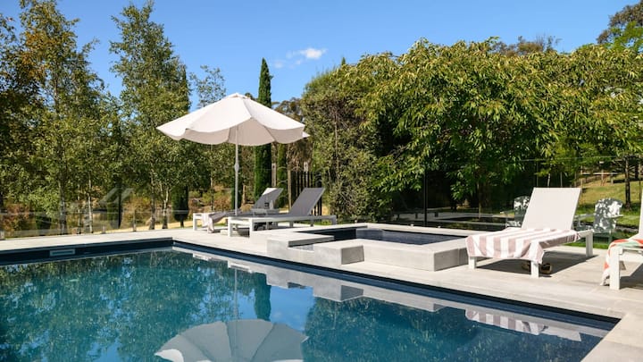 Აღმოაჩინეთ მისასალმებელი Paddock, დახვეწილი დიზაინის ქვეყნის უძრავი ქონება გაშლილი მასშტაბით 20 ჰექტარი მოძრავი მთებში, იდეალური საკურთხევლის unwinding ახლობლებს. Ეს საცხოვრებელი გამოირჩევა ახლახან დამატებული გარე მზის გათბობით აღჭურვილი აუზითა და გათბობით აღჭურვილი სპით, ორი ფართო კაშხლით, რომელიც მთელი წლის განმავლობაში დასვენებისა და სიმშვიდის თავშესაფარს უზრუნველყოფს. Გაანებივრეთ თანამედროვე კომფორტი სახლში, Wi-Fi, ჭკვიანი ტელევიზორი და კლიმატ-კონტროლი კონდიციონერით და გათბობით. Მოთავსებულია თვალწარმტაცი ქვეყნის პეიზაჟებით.