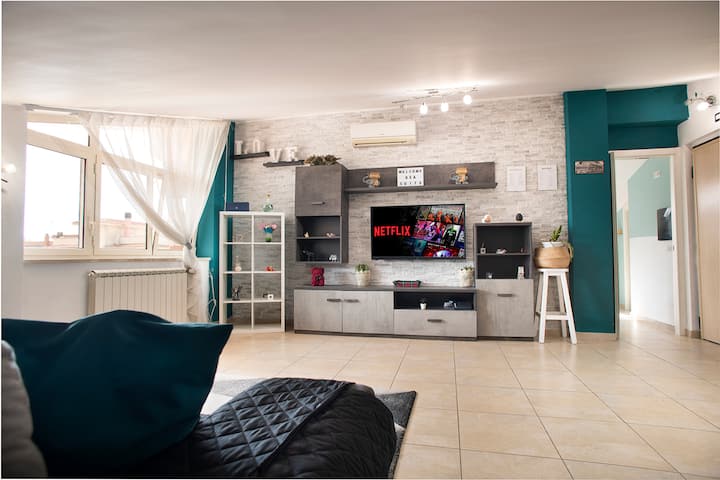 Თანამედროვე 2-საძინებლიანი ბინა, მყუდრო მისაღები ოთახი, აღჭურვილი სამზარეულო და ჰიდრომასაჟიანი აუზი. Იდეალურია წყვილებისთვის, ოჯახებისთვის და მეგობრების ჯგუფებისთვის. ის გთავაზობთ უფასო Wi-Fi ქსელს, კონდიციონერს, უფასო საპარკინგე ადგილს და მყუდრო დახვედრას. Მდებარეობს ფიუმიჩინოში, წყნარ, მაგრამ ცენტრალურ უბანში, რესტორნებიდან, სუპერმარკეტებიდან და საზოგადოებრივი ტრანსპორტიდან ფეხით სავალ მანძილზე. Ფიუმიჩინოს აეროპორტი რამდენიმე წუთშია ხელმისაწვდომი.