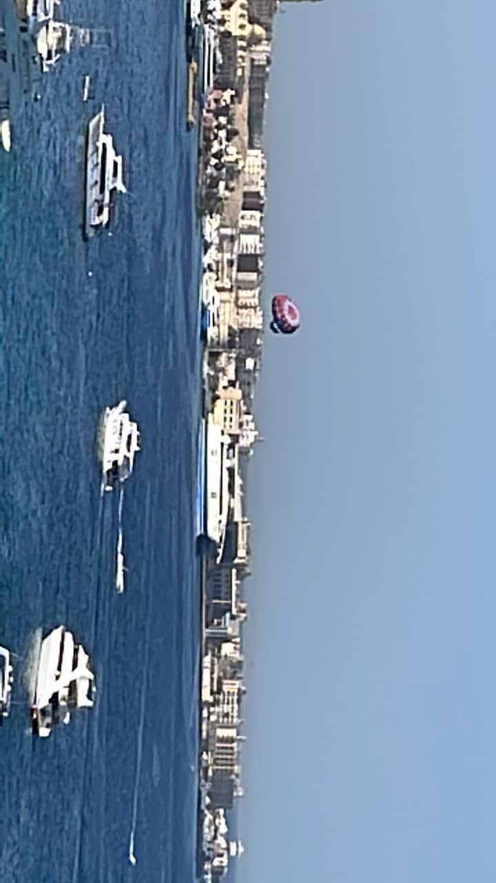 Მომწონს ზღვის ხედი მზის სხივებით აივნიდან ყავასთან ერთად, ულამაზესია