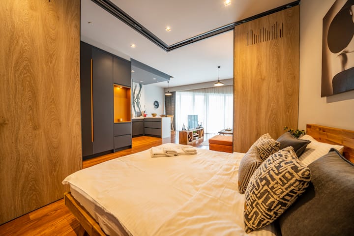 Lux 1BR საცხოვრებელში | საუნასა და სპორტდარბაზზე წვდომა s12a9