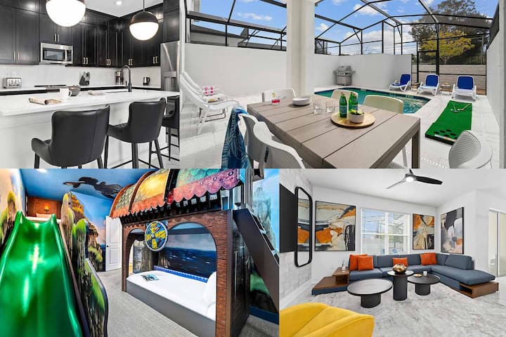 Ურბანული დახვეწილობა აკმაყოფილებს მყუდრო ატმოსფეროს ამ სუპერ chic 4-ოთახიანი gem on Orlando საერთაშორისო წამყვანი ნაბიჯები საუკეთესო თემატური პარკები, ატრაქციონები, სასადილო, და სავაჭრო ამ ეპიკური ქალაქი აქვს შესთავაზოს. Დააყენეთ თქვენი ჩანთები ქვემოთ სამი გემრიელი მეფე საძინებელი, და გააგზავნეთ littles off ისარგებლოს whimsical themed საძინებელი სადაც მათი წარმოდგენები აწარმოებს, როგორც ველური, როგორც Universal Orlando coasters ქვემოთ გზა. Დაიწყეთ ან დაასრულეთ დღე თქვენს პირად აუზზე. შეზლონგები, პატიოს მაგიდა და სხვა.