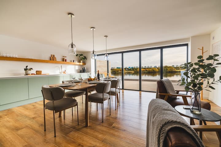 Წყლისპირა სახლი ჰიდრომასაჟიანი აუზით/საუნით