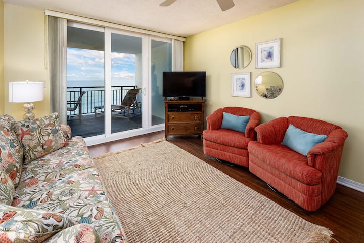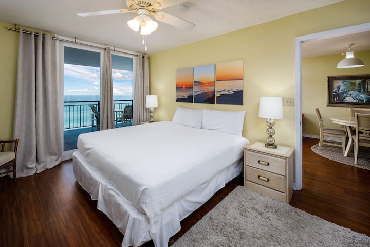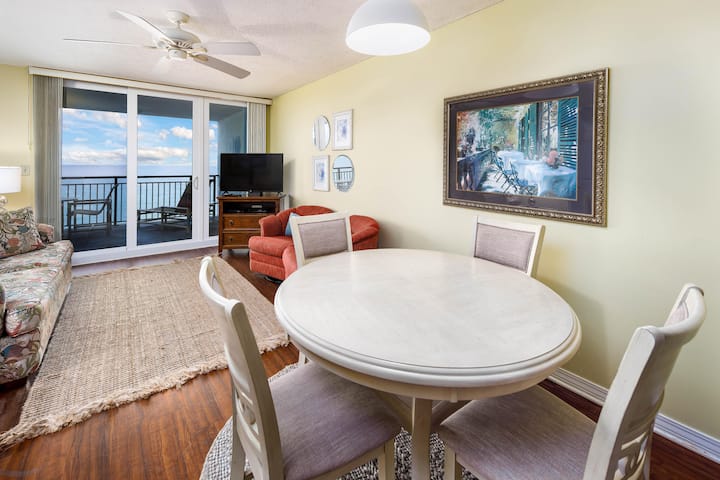 Დაისვენეთ და განიტვირთეთ Gulf-View Comfort-ში. Დატკბით მზისა და ყურის ხედებით მისაღებ სივრცეში იატაკიდან ჭერამდე პატიოს კარებიდან, რომლებიც ფართო ცალკე აივანზე გიწვევთ.