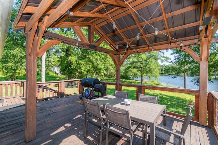 Ტბისპირა სახლი/5BR/თევზაობა/კანოე/6 ტელევიზორი/AC/3 ჰექტარი