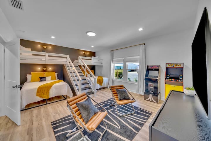 Შეიყვარეთ ეს ფართო ოჯახური დასვენება! Ჩვენი ორდონიანი სახლი იტევს მაქსიმუმ 16 ადამიანს. Დაიწყეთ თქვენი დღე პიკლბოლის თამაშით ან აუზში ჩაღრმავებით, შემდეგ კი ფეხით გაისეირნეთ პლაჟზე.