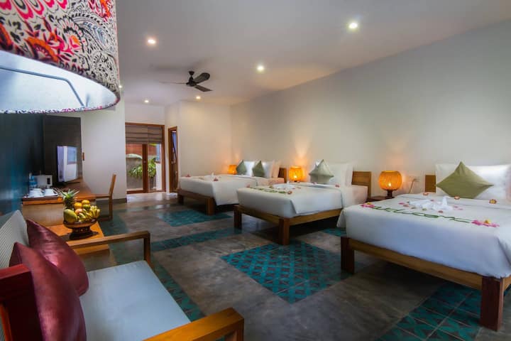 Ლუქს-კლასის სამადგილიანი ნომერი ბაღის ხედით და საუზმით