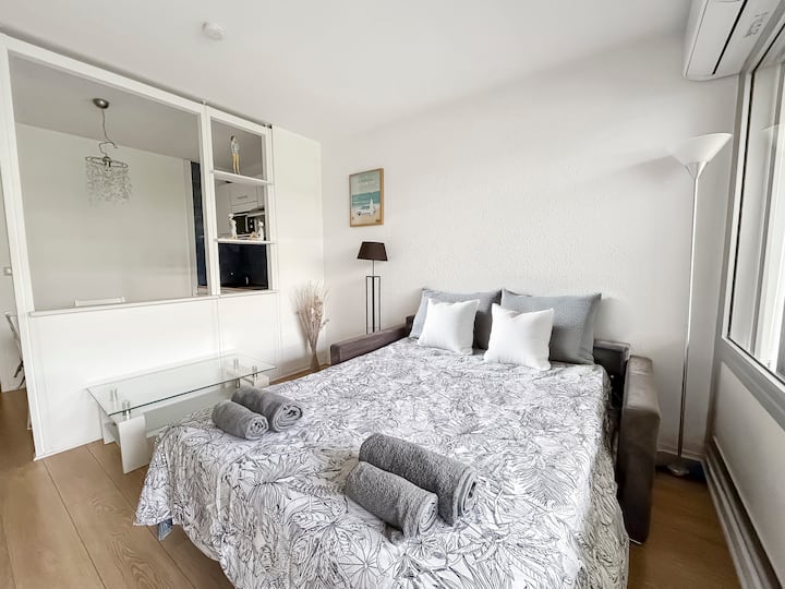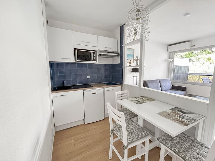 სტუდია 4 ადამიანისთვის Juan-les-Pins, მშვიდი და ყველა ადგილი ფეხით მისასვლელია