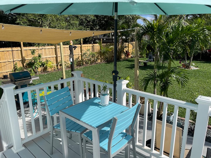 დელრეი-ბიჩის უზადო, განახლებული, ისტორიული კოტეჯი. ამ კერძო, სრულად შემოღობილი, გამწვანებული ტროპიკული ოაზისის ავტომატური ჭიშკრების მიღმა სრულიად მშვიდად იქნებით. რესტორნებამდე, ჩოგბურთის კორტამდე და პიკლბოლის მოედნამდე 1,3 კმ, ხოლო პლაჟამდე — 2,9 კმ. ძაღლებისთვის შესაფერისი., 2.4 გოლფამდე.
