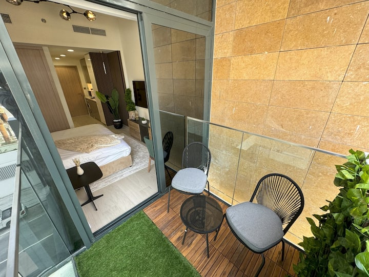 - დასასვენებლად დასაქირავებელი საცხოვრებლები გარე დასაჯდომი ადგილებით: Dubai