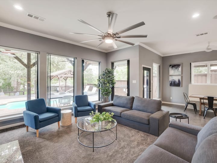 Დაათვალიერეთ ლუისვილის ტბის განსაცვიფრებელი ხედები 3-დონიანი ტერასიდან, სანახაობიდან, აივნიდან ან აუზიდან! Უკანა ეზოს გემბანის პოვნა უფრო შთამბეჭდავია. Ინდივიდუალური დიზაინი და ორიენტირებული გარშემო საცურაო აუზი და ჯაკუზი, სრული უპირატესობა ჩვენი თბილი Texas ამინდი და ისიამოვნეთ აღმავლობა შიდა/გარე ცხოვრების!