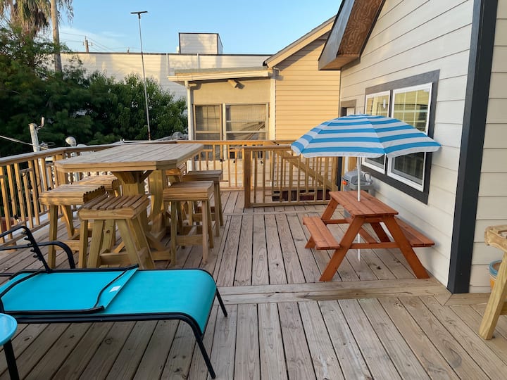 - დასასვენებლად დასაქირავებელი საცხოვრებლები გარე დასაჯდომი ადგილებით: Galveston