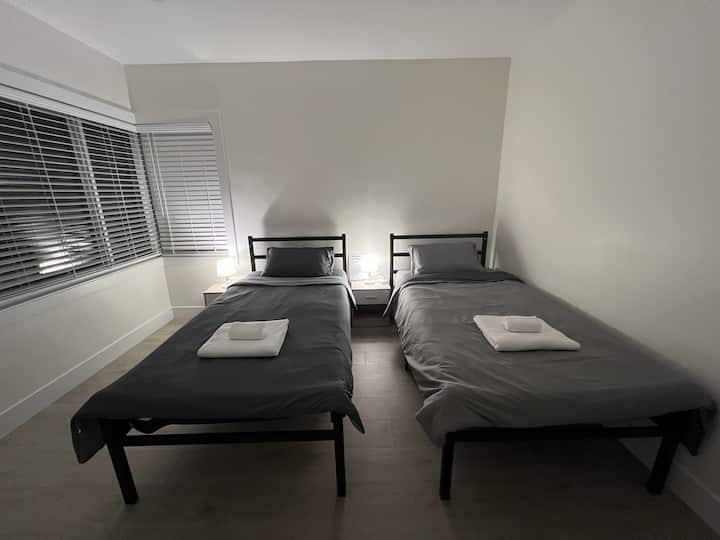 Ახალი მყუდრო ოთახი ორი ორადგილიანი საწოლით