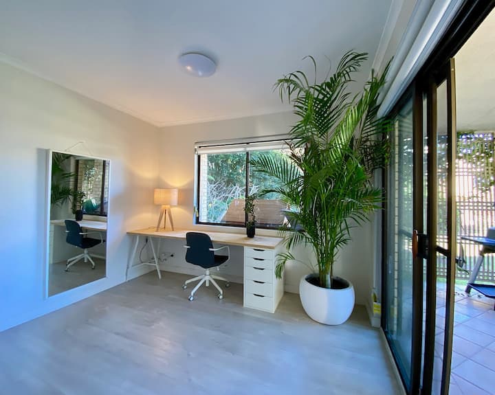 - სასწავლო სივრცე სამუშაო მაგიდით, სკამითა და დიდი მონიტორით (+ მაღალი სიჩქარის Wi-Fi)