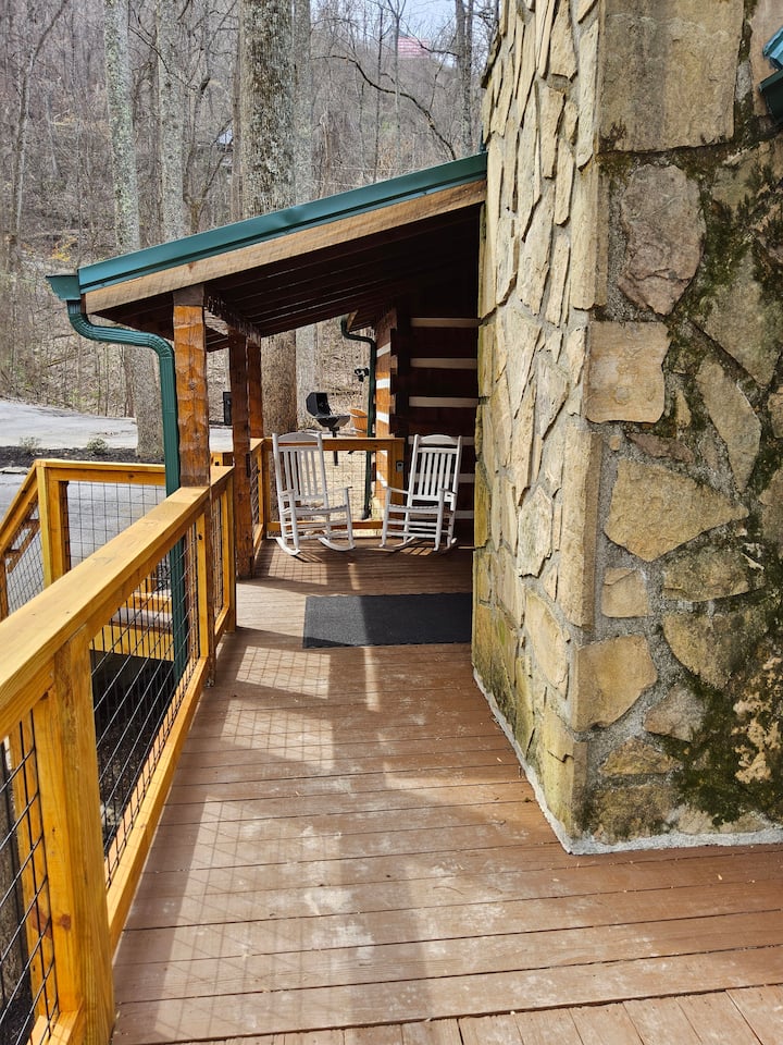 - დასასვენებლად დასაქირავებელი საცხოვრებლები გარე დასაჯდომი ადგილებით: Pigeon Forge