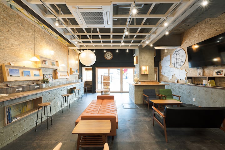Ორადგილიანი ცალკე ოთახი [ნახევრად ორადგილიანი საწოლი] თავისუფლად შეგიძლიათ ისარგებლოთ ერთობლივი სამუშაო სივრცით!Ჰოსტელი კონპირას გზის გასწვრივ.