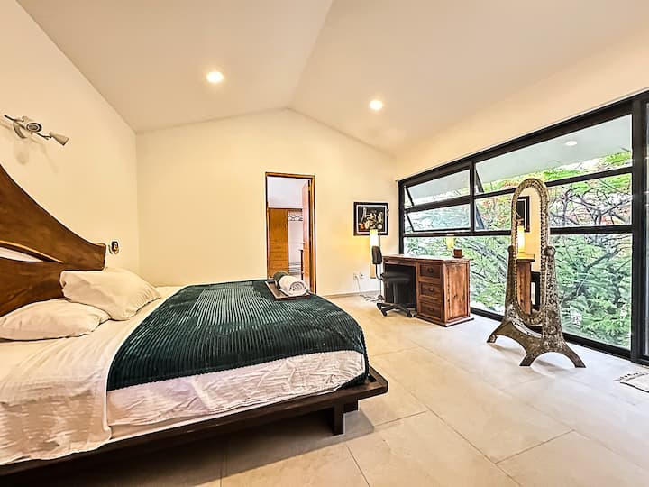 Გამარჯობა! ალეხანდრო გწერთ. Შვიდი წლის წინ გადავწყვიტეთ, დაგვეტოვებინა ქალაქი და მისი სათნოებები გარეუბანში გვეცხოვრა. Ტეპოზტლანი თავისი ქარით, ჯადოსნური სოფლის თავისებურებებით და ტულუმილენდიდან ჩამოვედი, რომ აქ ჩემს ძაღლებთან ერთად მეცხოვრა. Მსურს, რომ მათ შეუყვარდეთ ეს ადგილი და იცხოვრონ დაუვიწყარი მომენტებით, რაც საუკეთესო ატმოსფეროს ქმნის.