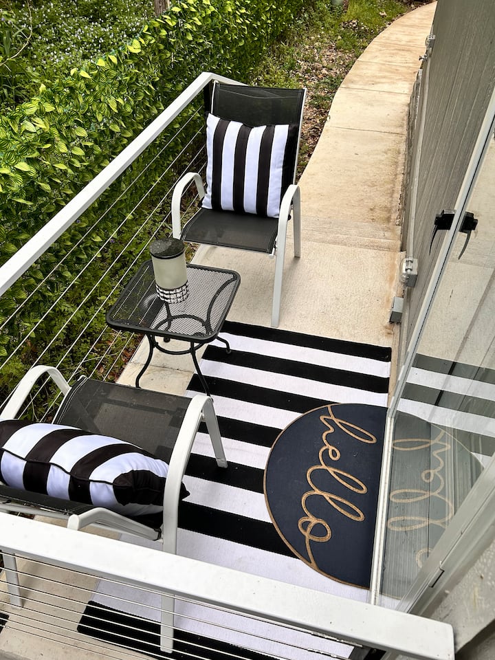 - დასასვენებლად დასაქირავებელი საცხოვრებლები გარე დასაჯდომი ადგილებით: New Braunfels