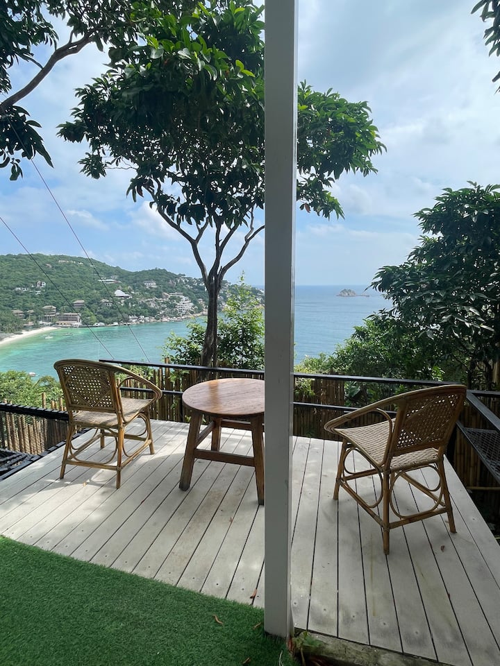 - დასასვენებლად დასაქირავებელი საცხოვრებლები გარე დასაჯდომი ადგილებით: Ko Tao