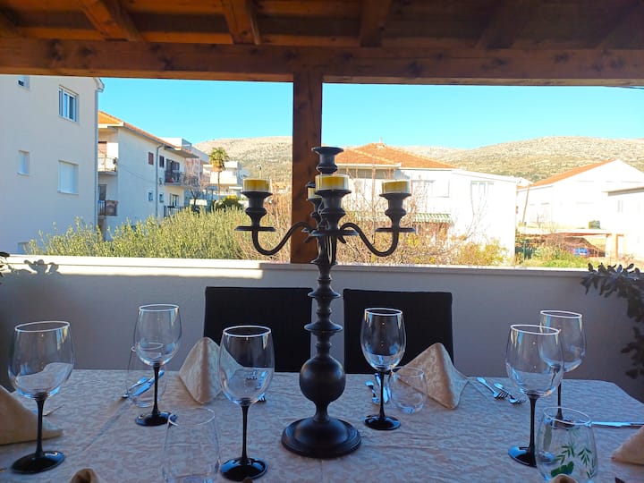- დასასვენებლად დასაქირავებელი საცხოვრებლები გარე დასაჯდომი ადგილებით: Trogir