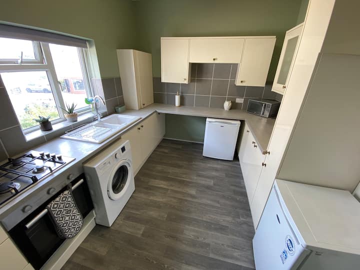 2 საწოლი ბინა, პარკინგი, სწრაფი გასეირნება პლაჟზე.