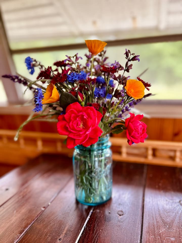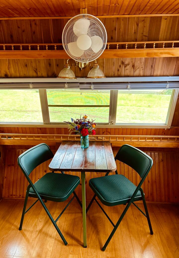 - დასასვენებლად დასაქირავებელი საცხოვრებლები გარე დასაჯდომი ადგილებით: James River