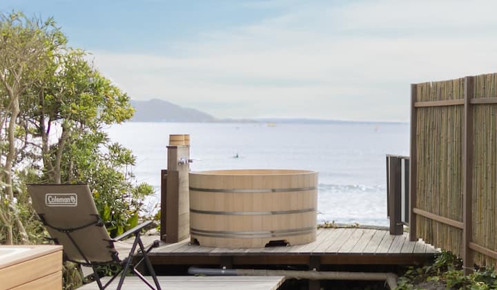 BBQ /サウナ/駅徒歩5分/露天風呂/立地最高/目の前由比ヶ浜/最大8人/コンビニ横/ロケ地巡り