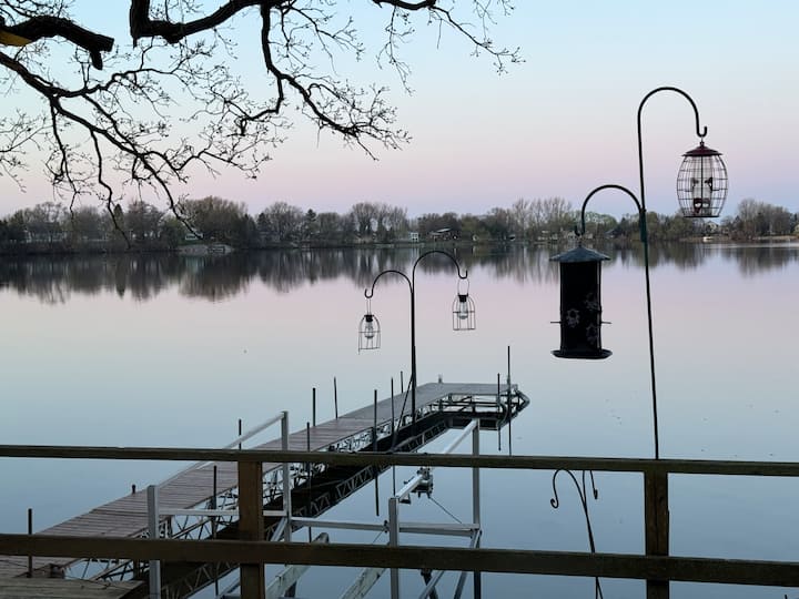 Ხის სახლი სუფთა, წყნარ ტბაზე