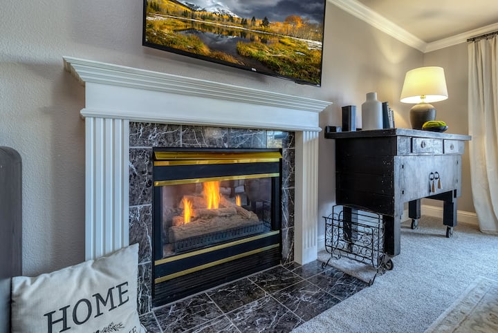 *მყუდრო ბუხარი და Smart Roku TV – შეიკრიბეთ ფილმების, სპორტისა თუ დასასვენებელი საღამოსთვის.