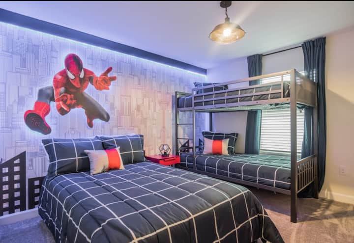 Მოემზადეთ დაუვიწყარი მოგონებების შესაქმნელად! ჩვენი სახლი შექმნილია იმისთვის, რომ პარკებში თავგადასავლებით სავსე დღის შემდეგ მშვიდად დაისვენოთ. საცხოვრებელი მდებარეობს უსაფრთხო და წყნარ კონდომინიუმში და გთავაზობთ ყველა იმ კომფორტს, რომელიც თქვენს ოჯახს სჭირდება • თემატური ოთახები: გარანტირებული გართობა ბავშვებისთვის!