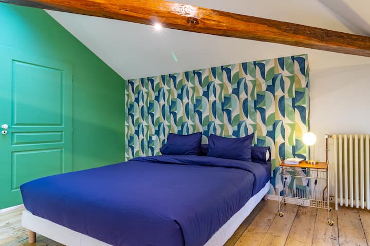 → 1 საძილე სივრცე 2 ადამიანისთვის ორადგილიანი საწოლით, აღჭურვილია მაღალი ხარისხის მატრასით, რომელიც გთავაზობთ იდეალურ მხარდაჭერას მშვიდი ძილისთვის. Მიმდებარე სააბაზანო და საგარდერობო ოთახი გადაჰყურებს სახელგანთქმულ საკათედრო ტაძარს სენ ‑ პიერ ‑ პოლს.