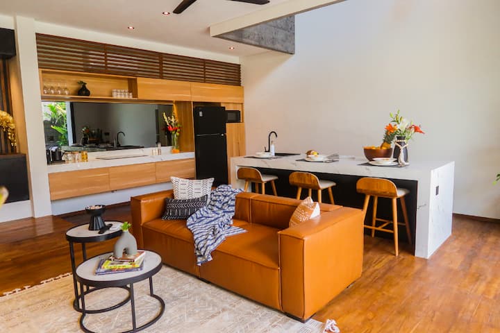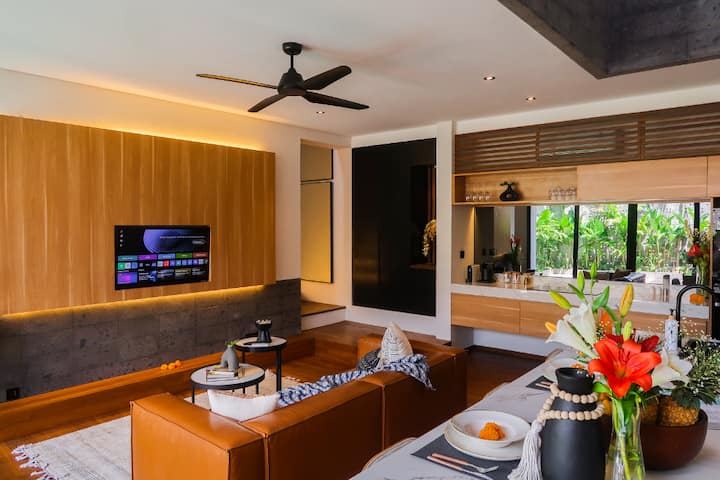 Ვილა მალუკუს ღია განლაგება უპრობლემოდ აკავშირებს შეზლონგს სრულად აღჭურვილ სამზარეულოსთან და ქმნის ფუნქციურ და ვიზუალურად განსაცვიფრებელ სივრცეს.