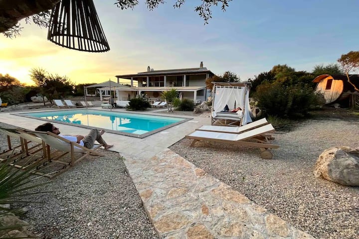 Ლუქს-კლასის ვილა აუზით, საუნითა და გარე ჰიდრომასაჟიანი აუზით, რომელიც სარდინიის ქალაქ ალგეროში, ზღვიდან სულ რაღაც 4 კმ-ში მდებარეობს. აქ შეიძლება 23 ადამიანის განთავსება. საცხოვრებელშია 9 საძინებელი (მათ შორის, 3 გლემპინგის კარვა) და 5 სააბაზანო.