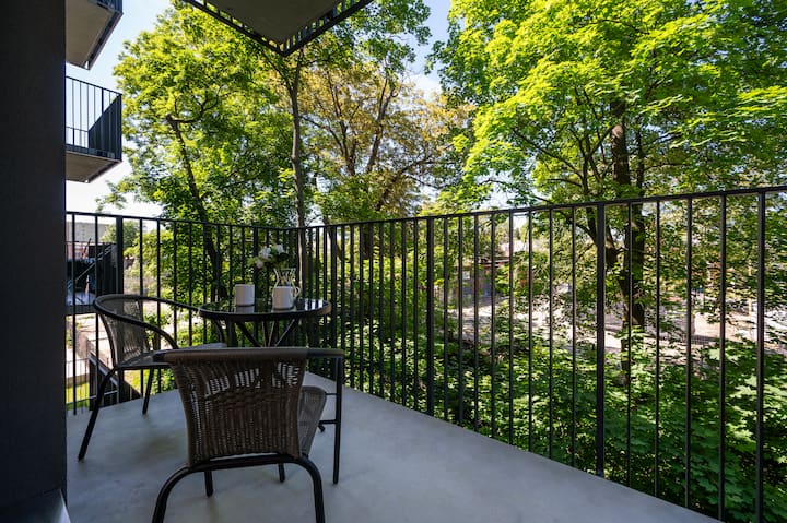 Თქვენ დააფასებთ სამუშაო სივრცეს, რომელიც იდეალურია დისტანციური მუშაობისთვის და სწრაფი Wi-Fi ქსელით, რომ კავშირი შეინარჩუნოთ. Განიტვირთეთ ხანგრძლივი დღის შემდეგ სმარტ-ტელევიზორის წინ ან გამოდით აივანზე, სადაც შეგიძლიათ დაისვენოთ მშვიდი ეზოს ხედით – იდეალური ადგილია დილის ყავის ან საღამოს სასმელის დასალევად.