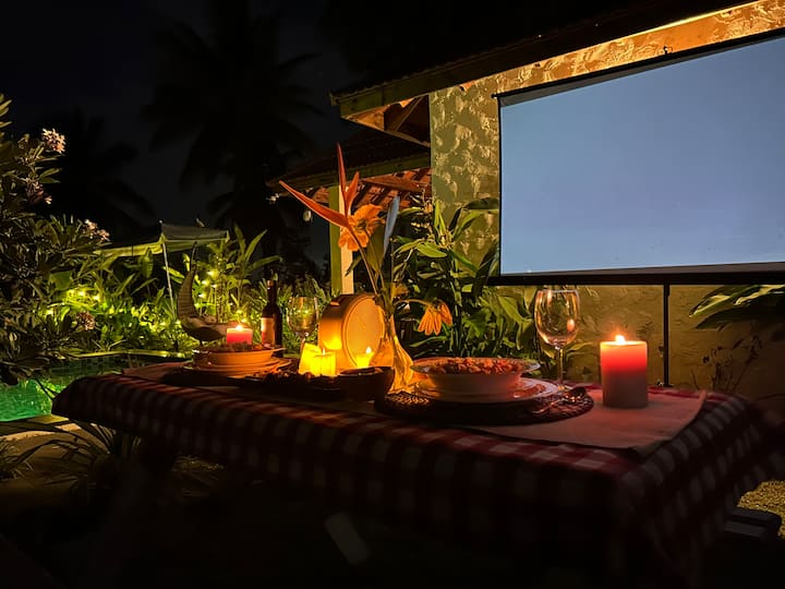 რომანტიკული საცხოვრებელი წყვილისთვის, ცალკე აუზით და ჰავაის სტილით