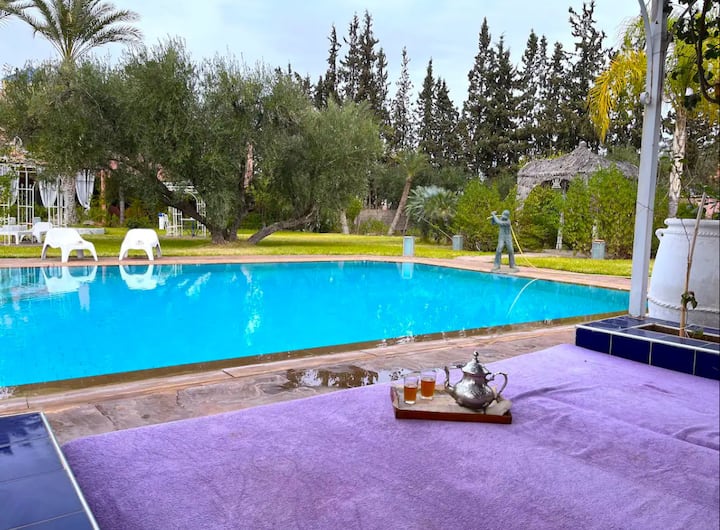 Აღმოაჩინეთ ლუქს-კლასის ოაზისი მარაკეშში ჩვენი განსაკუთრებული ვილით - შესანიშნავი განმარტოებით, სადაც კომფორტი ელეგანტურობას შეესაბამება. 13 ფართო საძინებლით ეს ვილა იდეალურია დიდი ჯგუფებისთვის ან დიდი ოჯახებისთვის - იდეალური ვარიანტია დაუვიწყარი დასვენებისთვის.