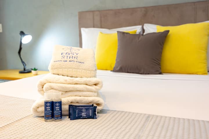 Ჩვენს საცხოვრებელში არის სტანდარტული ორადგილიანი საწოლი, კონდიციონერი, მაღალსიჩქარიანი Wi-Fi კავშირი და სმარტ-ტელევიზორი გართობისთვის.