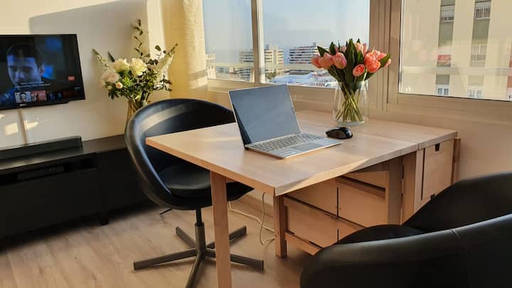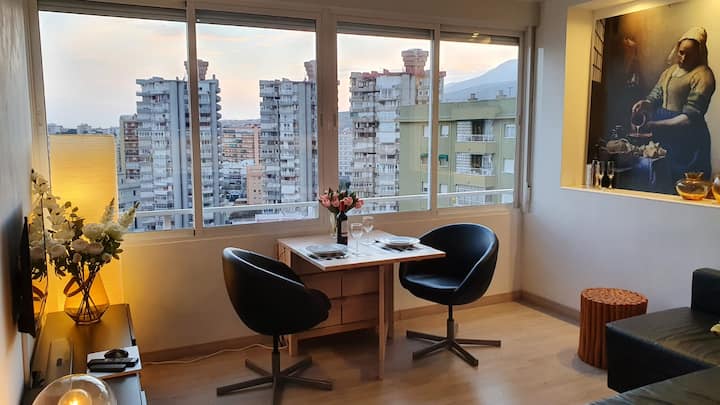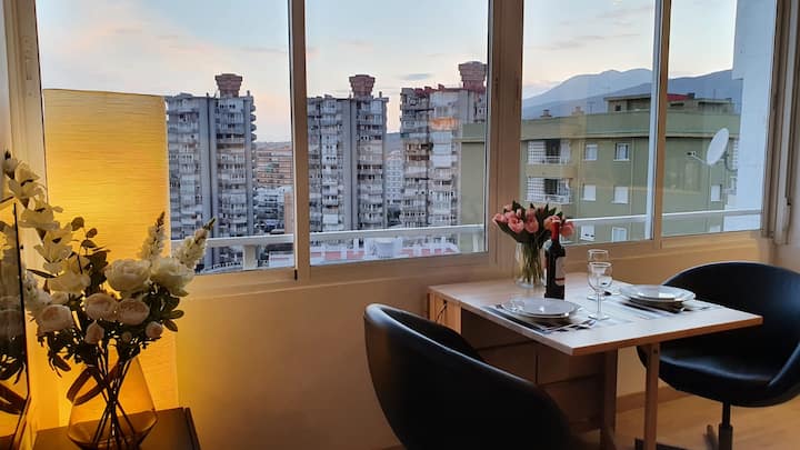 Თანამედროვე ბინა ქალაქის ცენტრში შესანიშნავი ხედებით