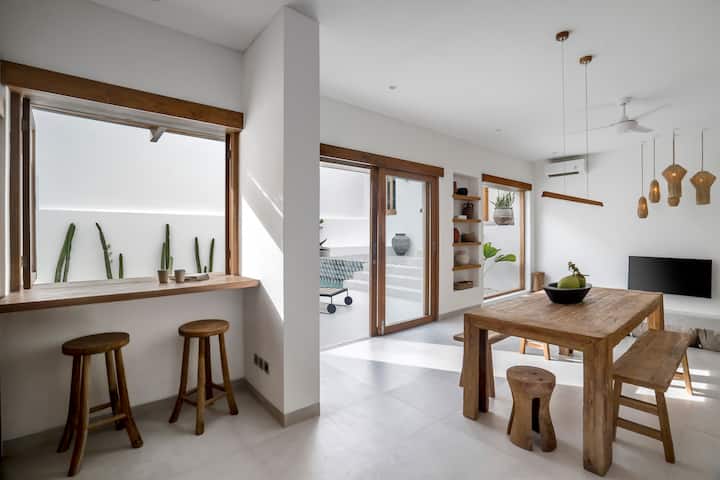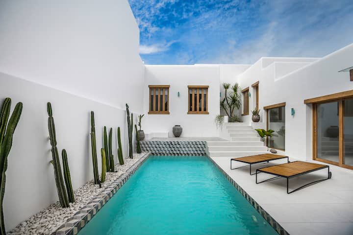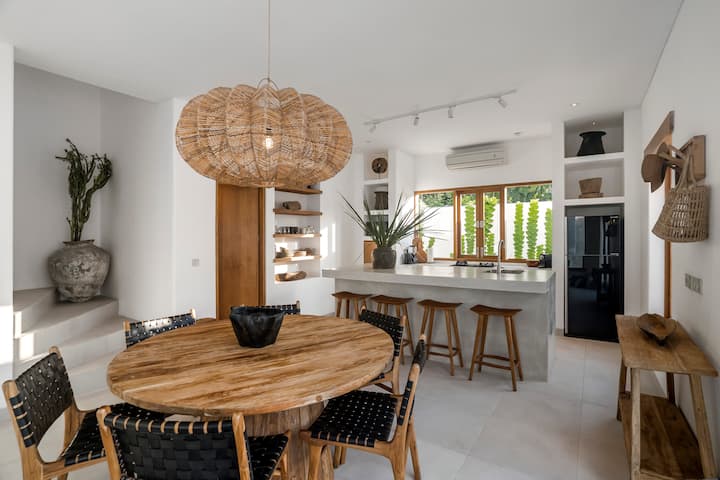 Შეაბიჯეთ Bingin-ის ამ ვილაში პირადი აუზით, სადაც ტროპიკული ხიბლი ხმელთაშუა ზღვის სტილს შეესაბამება. Გარე ტერიტორია გამოირჩევა ლაგუნის ფერადი აუზით სტუმართმოყვარე დასასვენებელ სივრცესთან ერთად, რომელიც მშვიდი დასვენების საშუალებას იძლევა.