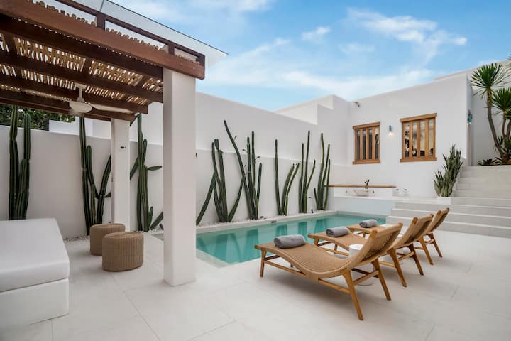 Კეთილი იყოს თქვენი მობრძანება 5-საძინებლიან ტროპიკულ საცხოვრებელში ბინგინში, სადაც ბოჰოს ესთეტიკა ტროპიკულ ხიბლს ხვდება. Ეს დამალული ძვირფასი ქვა გთავაზობთ მშვიდ დასვენებას ცალკე აუზით მზის ჩასვლისა და გვიან ღამით ვარსკვლავების ქვეშ ცურვისთვის. Დაისვენეთ გარე შეზლონგში და დატკბით მშვიდი გარემოთი.