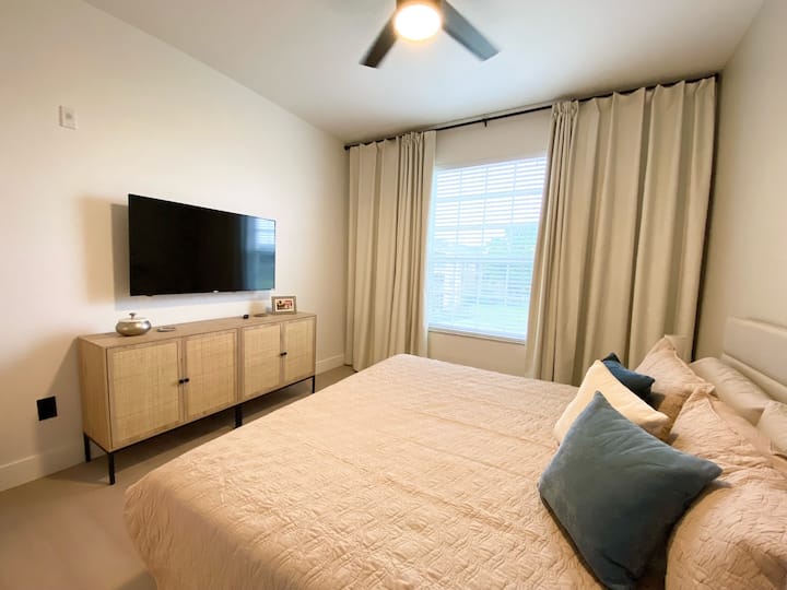 Მთავარ საძინებელში არის დიდი საწოლი, დიდი კომოდი, ორი ტუმბო და კედელზე მიმაგრებული ტელევიზორი. Პატარა კარადა, რომელიც შეიცავს სეიფის/ფაილის კარადის უჯრას, რომლის გამოყენებაც სტუმრებს შეუძლიათ, ასევე, მტვერსასრუტი. Მთავარ საძინებელთან მიმაგრებულია მთავარი სააბაზანო. Ამ განსაცვიფრებელ დიდ სააბაზანოში არის შუშის კაფელის საშხაპე, დიდი ვანა-ტუალეტი, ნიჟარა და უნიტაზი. სტუმრებისთვის სტუმრობის დასაწყებად მოწოდებულია ტუალეტის ქაღალდის 2 რულონი. Საშხაპეში არის შამპუნის, კონდიციონერისა და ტანის დასაბანი ბოთლები, რომელთა გამოყენებაც სტუმრებს შეუძლიათ. Ამას გარდა, სტუმრებისთვის ხელმისაწვდომია ხელის საპონიც.