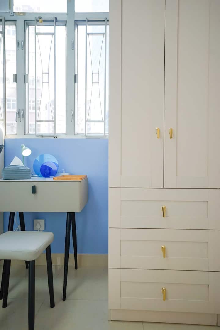 მყუდრო ორადგილიანი ოთახი ფანჯრით და ორმაგი საწოლი — Man Yuen ST. Austin MTR