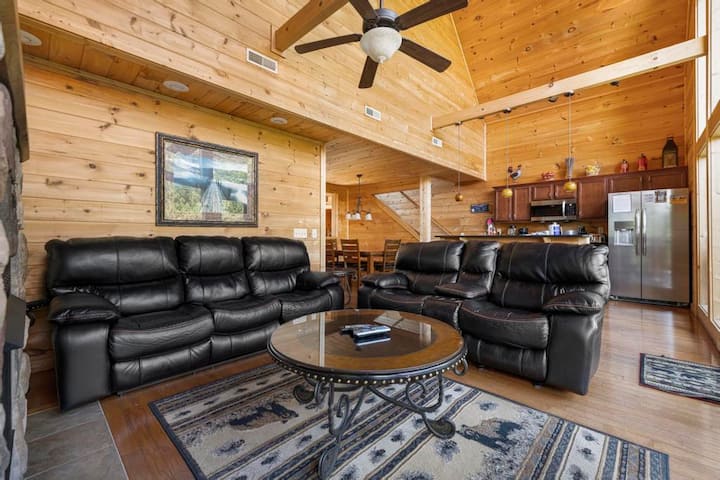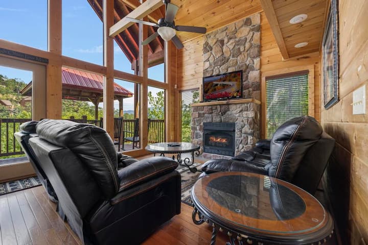 Სამოთხის სიმშვიდის მისაღები ოთახი გამოირჩევა თაღოვანი ჭერით იატაკიდან ჭერამდე ფანჯრებით და პრაქტიკულად ღია ცის ქვეშ! Უყურეთ ფილმს Netflix-დან დიდ ბრტყელეკრანიან ტელევიზორში ან გაისეირნეთ ბუნებრივი აირის ბუხართან, მიუხედავად იმისა, რომ ვიცით, რომ მშვიდად იგრძნობთ თავს მშვიდად A Peace of Paradise-ში.