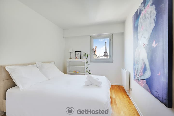 Ეიფელის კოშკის ხედი - მომხიბვლელი მხატვრის ბინა