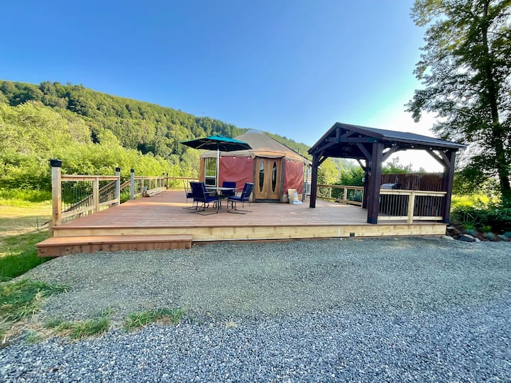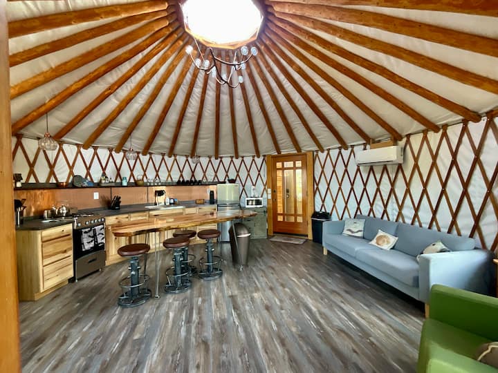 Ჩვენი ყვავის ბუდის იურტა ღამურის ფრთების დამატებით გთავაზობთ ჩიტების თვალის ხედს მდინარე კოლუმბიაზე ბუნებასთან ახლოს მდებარე თავშესაფრით. Იურტა მდებარეობს დიდ ტერასაზე კომფორტული სამზარეულოთი და მისაღები ოთახით. Ღამურების ეკლექტურ ფრთაზე განთავსებულია საწოლი დიდი ზომის, ლამაზი ხედები და სააბაზანო. Გალავანში შედის პროპანის მწვადი და გარე დასაჯდომი ადგილები. Სწრაფი ინტერნეტი, ასევე, სტრიმინგ-ტელევიზია. Დატკბით საზიარო დოკით, პირსითა და წარმოუდგენელი ველური ბუნებით. Ზაფხულის თვეებში შესანიშნავი ადგილია კაიაკისთვის ან საპსერფინგისთვის.