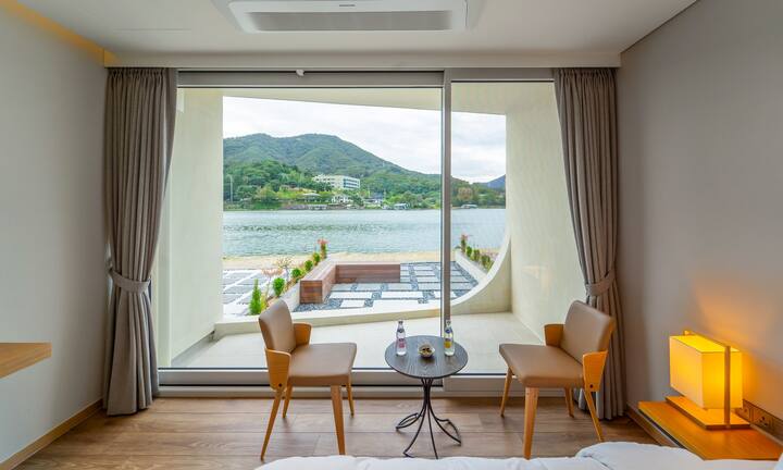 북한강 뷰의 모던한 인테리어 객실 가든테라스 더블 110