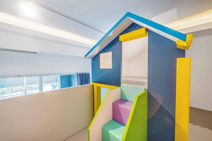 — ბავშვებისთვის განკუთვნილი სათამაშოები და სლაიდები ყველა ოთახში და მეორე სართულზე