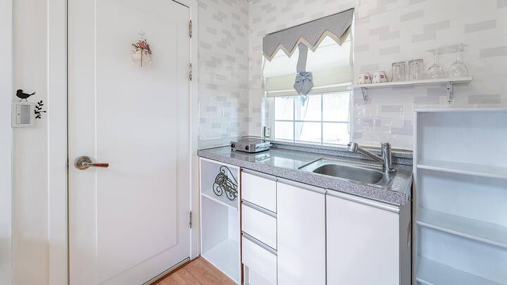 ინდივიდუალური გრილი, ტუალეტის მაგიდა, ტელევიზორი, კონდიციონერი, მაცივარი, ინდუქციური ქურა, ბრინჯის მოსამზადებელი მოწყობილობა, მიკროტალღური ღუმელი, ყავის ქოთანი, საშრობი, სამზარეულოს აღჭურვილობა/ხელსაწყოები, პირსახოცი, შამპუნი, კონდიციონერი, ტანის დასაბანი საშუალება, საპონი, კბილის პასტა, ძირითადი სუნელები, Wi‑Fi, მოწევის აკრძალვა, სააბაზანოს ნივთები, VOD