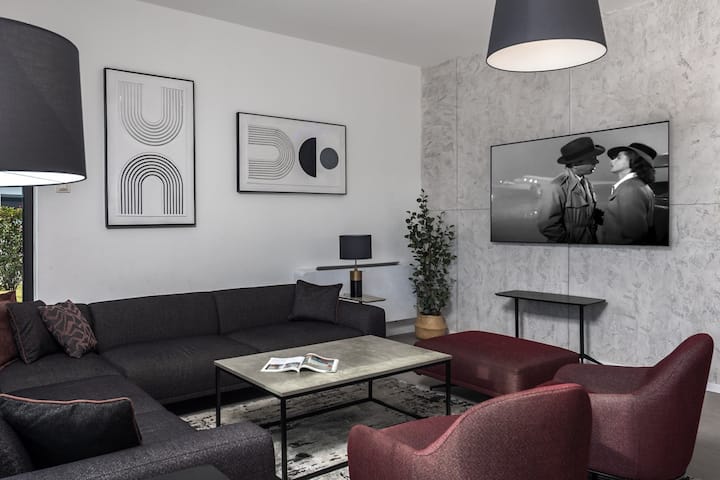 Ფართო მისაღები ოთახი, კონდიცირებული, ნათელი და კომფორტული, იდეალური ადგილია თქვენი საყვარელი ფილმის ყურებისას სმარტ-ტელევიზორის დიდ ეკრანზე ან ოჯახთან და მეგობრებთან ერთად დროის სასიამოვნოდ გასატარებლად.