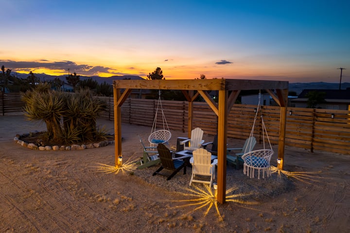 - დასასვენებლად დასაქირავებელი საცხოვრებლები გარე დასაჯდომი ადგილებით: Joshua Tree