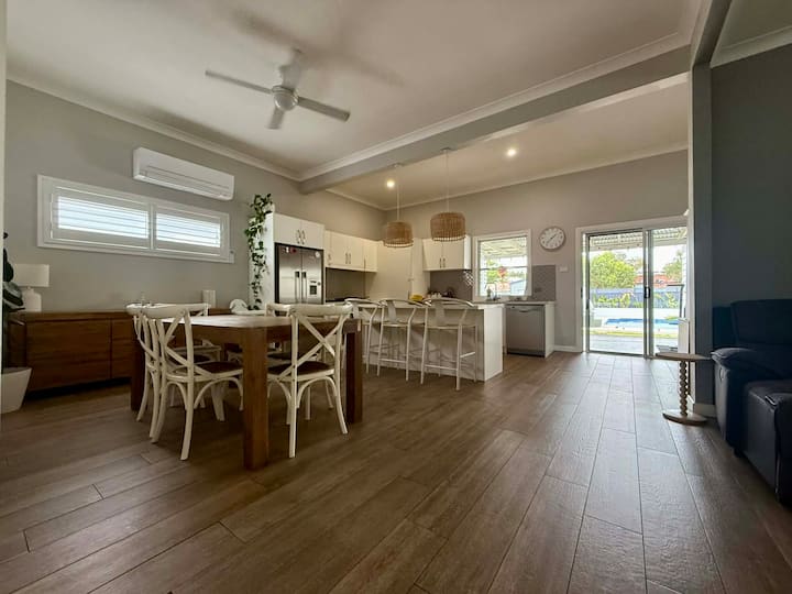Შეინარჩუნეთ ის ამ მშვიდ და ცენტრალიზებულ საცხოვრებელში. მოგესალმებით იარინგაში, მშვიდ გარემოში მდებარე საცხოვრებელში მეიფილდ‑ისტში. მსუბუქი, 3‑საძინებლიანი საცხოვრებელი დასასვენებლად — ღია გეგმარების მისაღები ოთახი, შიდა და გარე სივრცეების ერთმანეთთან გადასვლა და კერძო აუზი, რომელშიც გაგრილდებით ნიუკასლის ცხელ დღეებში. შეკრიბეთ სამზარეულოში, განიტვირთეთ წყლის ნაპირას ან ისადილეთ გარეთ. დიდი სივრცე, ორი სააბაზანო და ყველაფერი, რაც კომფორტული სტუმრობისთვის არის საჭირო.